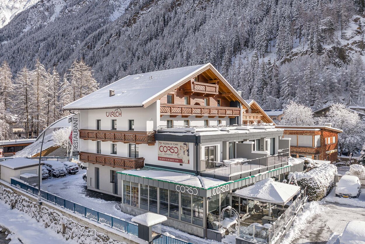 On picturesque roads through the breathtaking alpine landscape, your travel route to Ötztal leads straight into adventure. B 186 Ötztalstraße winds along Ötztaler Ache river, directly towards your room at Haus Ulrich in the center of Sölden. Take your time and let the journey become a panoramic experience.
